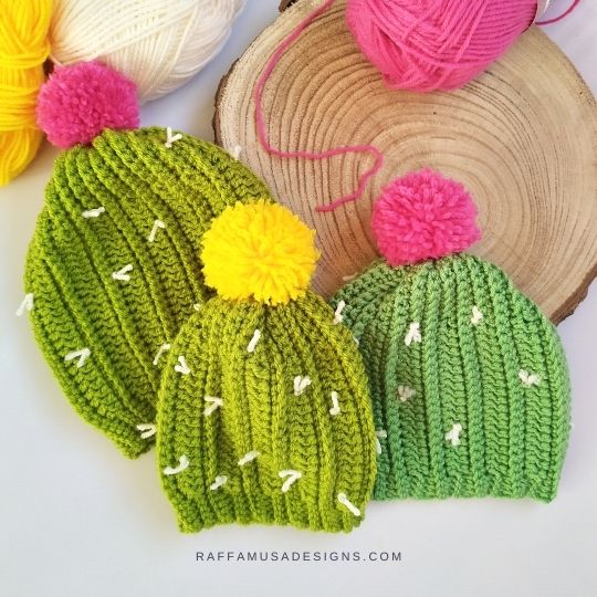 Try to crochet this adorable cactus baby beanie. Skill level is Easy. Click here to view pattern